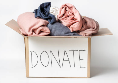 Sortin g clothing donations to prepare for Blessing Closet distribution.