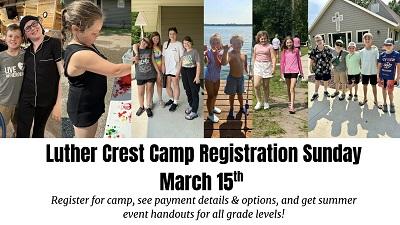 Registration for camp must be done through Luther Crest, though all payments are handled by Zion. Below are the registration steps: